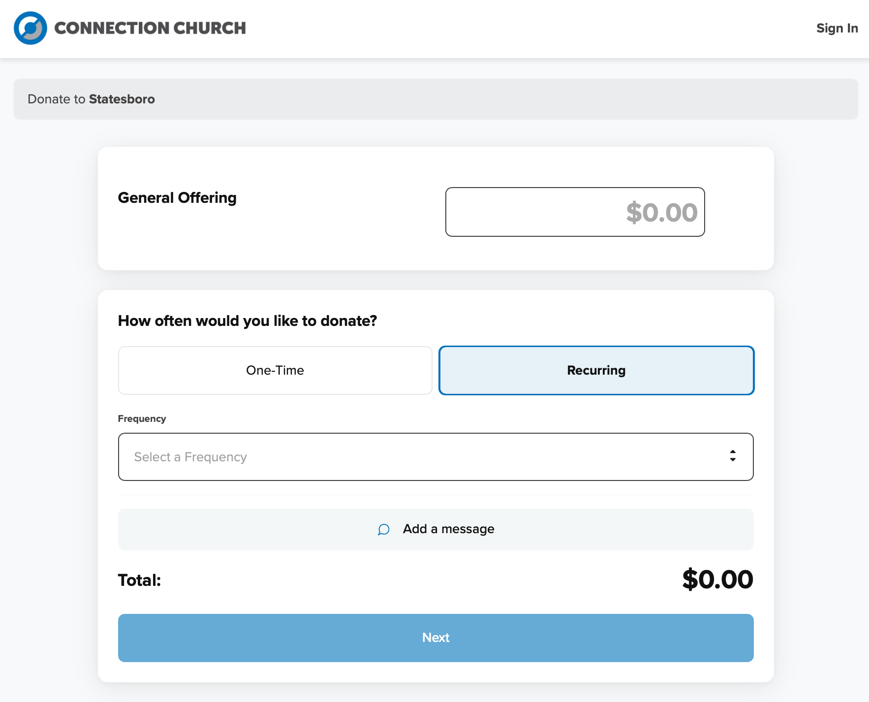 Setting up a recurring gift is a great way to consistently put God first in your finances. Recurring giving is easy and takes just minutes to set up. Simply choose your schedule and amount to automate your giving today.